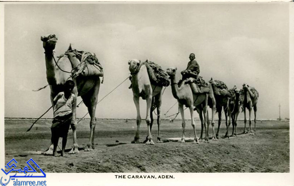 قافلة من الجمال مغادرة عدن باتجاه ابين في الخمسينات