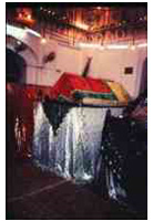 حجرة مربعة تحتوي بداخلها على توابيت خشبية للشيخ