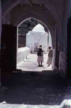 غربية وسط الفناء، بينما ينحني آخر تحت أحد الأقواس |