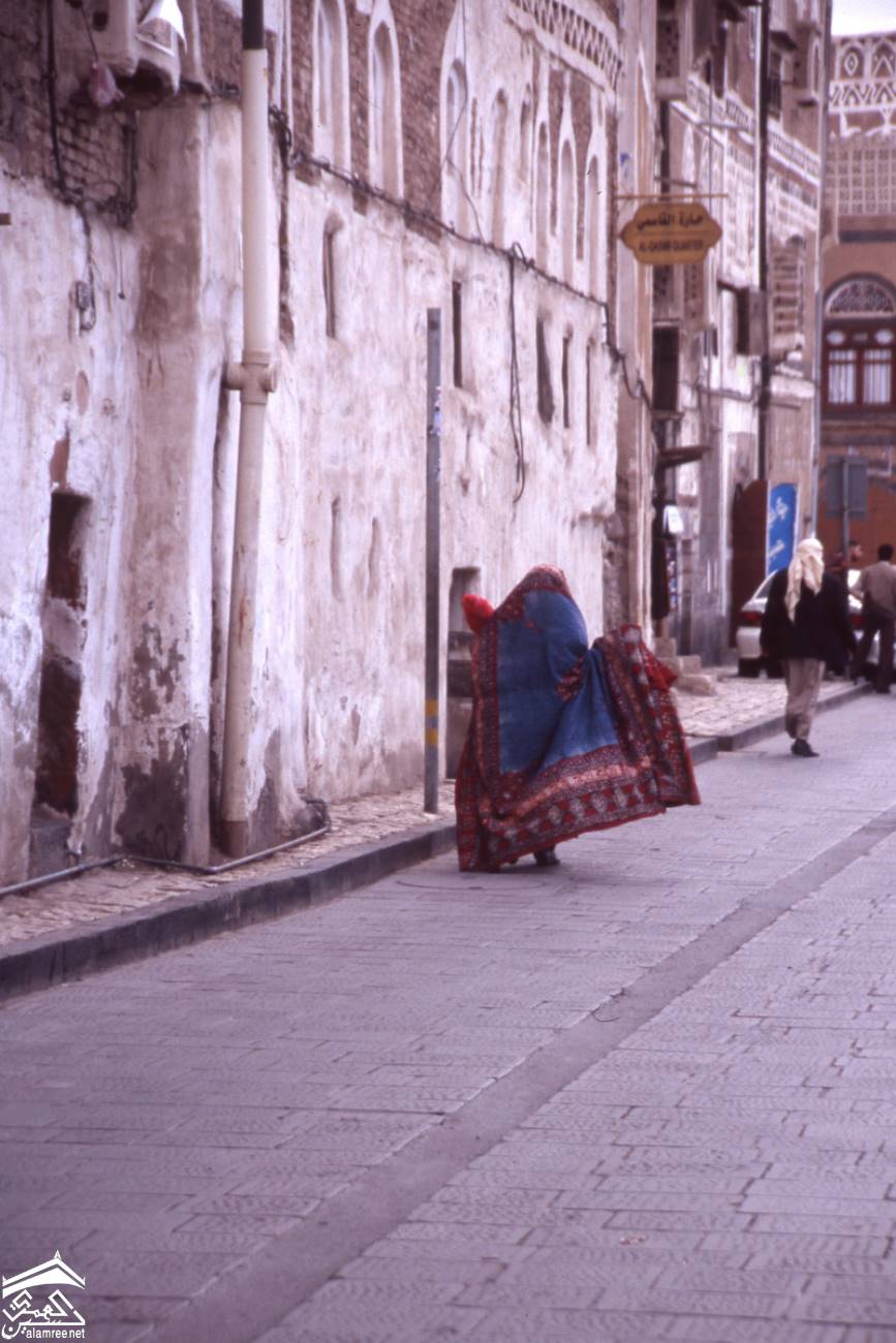 من الرأس إلى أخمص القدمين، ويغطي الحجاب الأسود وجوههن بالكامل. ويمكن