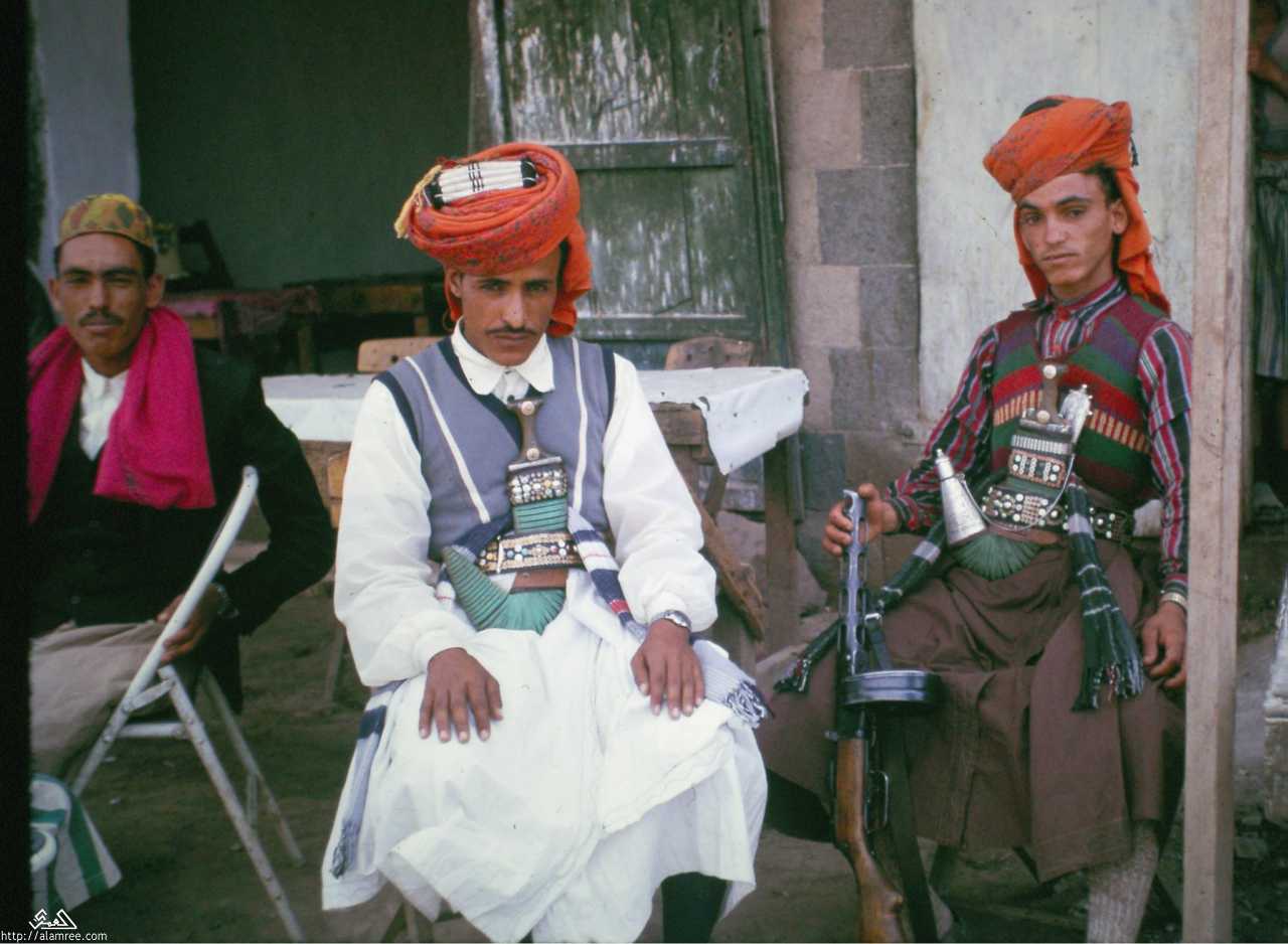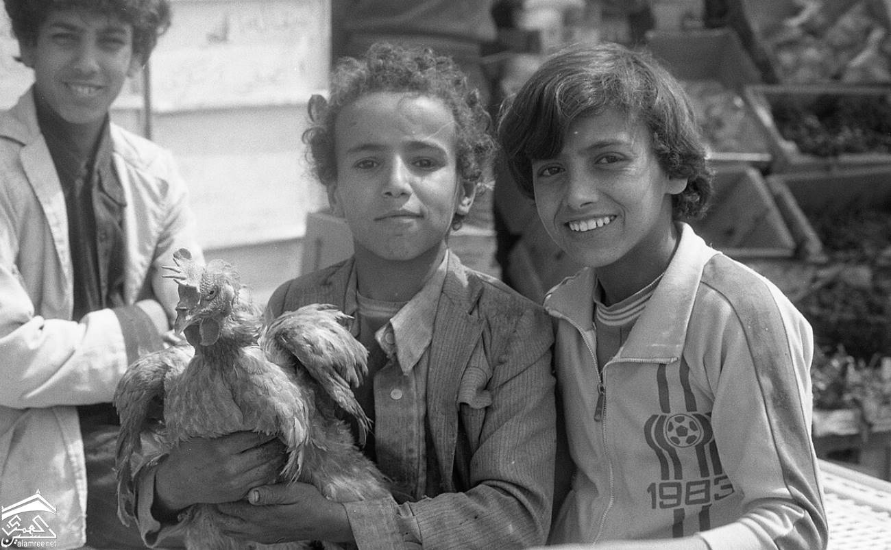 ثلاثة فتيان بعد خروجهم من سوق الدداج بصنعاء ثمانينيات القرن اماضي
