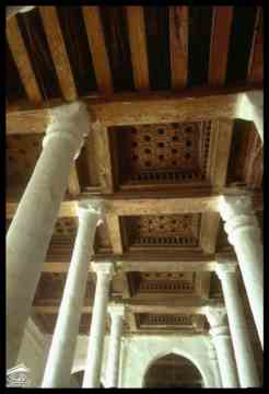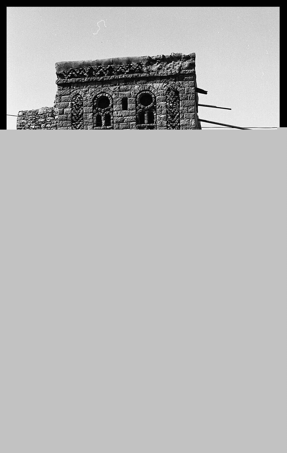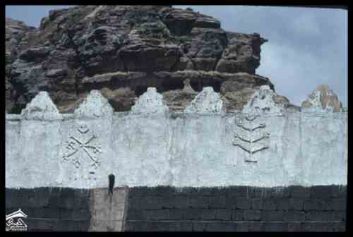 اليمن - شبام - زخارف منحوتة في أعلى جدار خارجي للمسجد الكبير تصوير بول بونينفانت عام 1996م