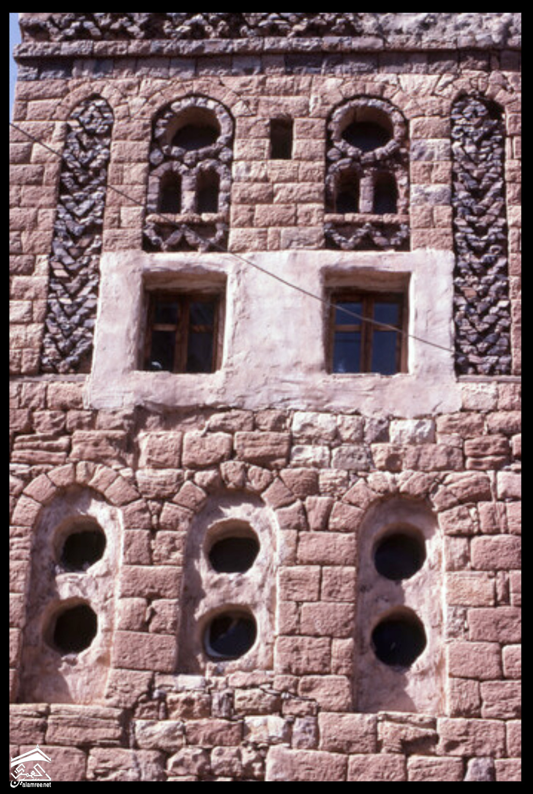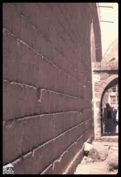 اليمن - شبام - مطابقة أحجار الجدار الخارجي للمسجد الكبير تصوير بول بونينفانت عام 1996م
