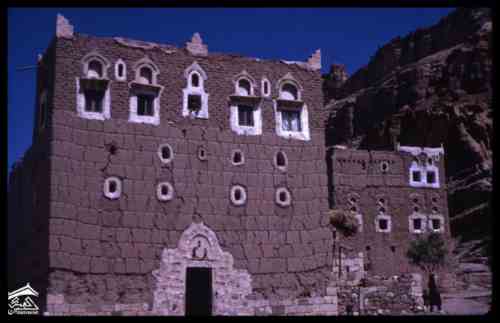 اليمن - شبام - منظر لمدخل منزل تصوير كلودي فايين عام 1969م