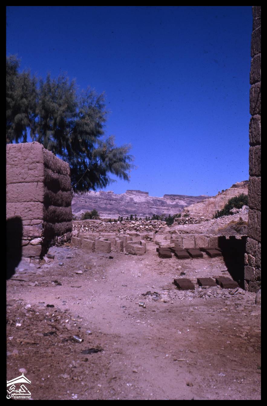 اليمن - شبام - منظر لبقايا مبنى حجري في بيئة تحت الأرض