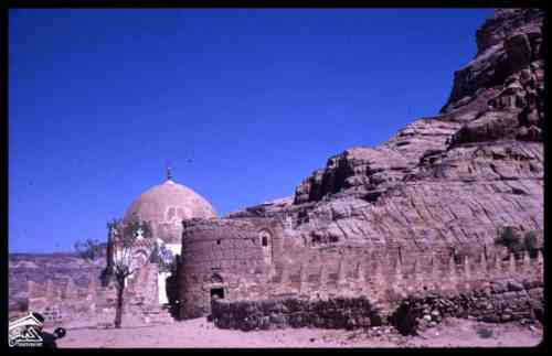 اليمن - شبام كوكبان - ضريح عند سفح جبل، خلف حصنتصوير كلودي فايين 1969م