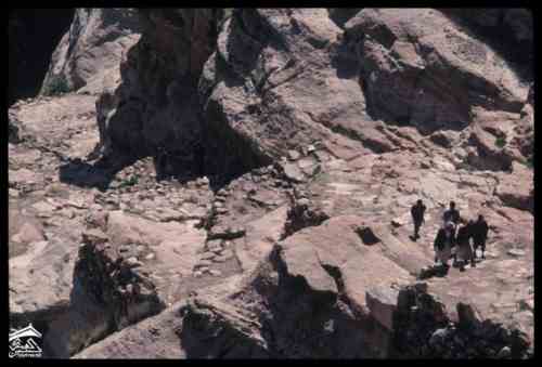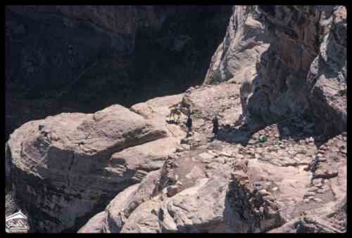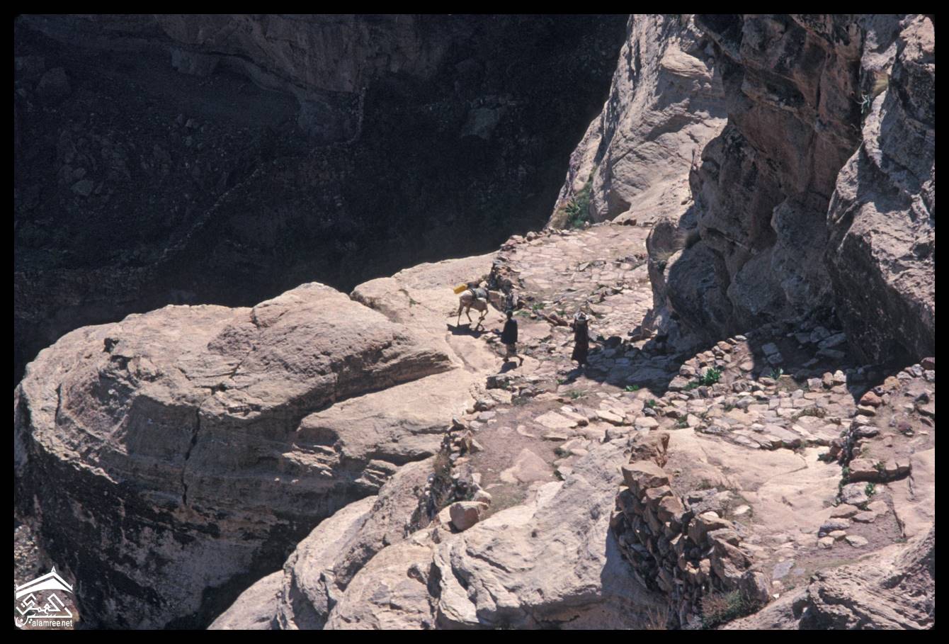 اليمن - شبام - أثر البغال ينحدر من كوكبان إلى شبام تصوير بول بونينفانت عام 1996م