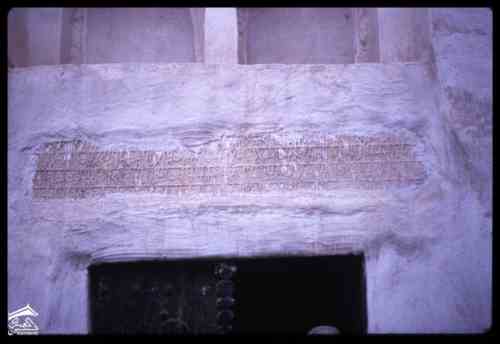 شبام كوكبان - باب خشبي يعلوه قوس ونقش باللغة السبئية