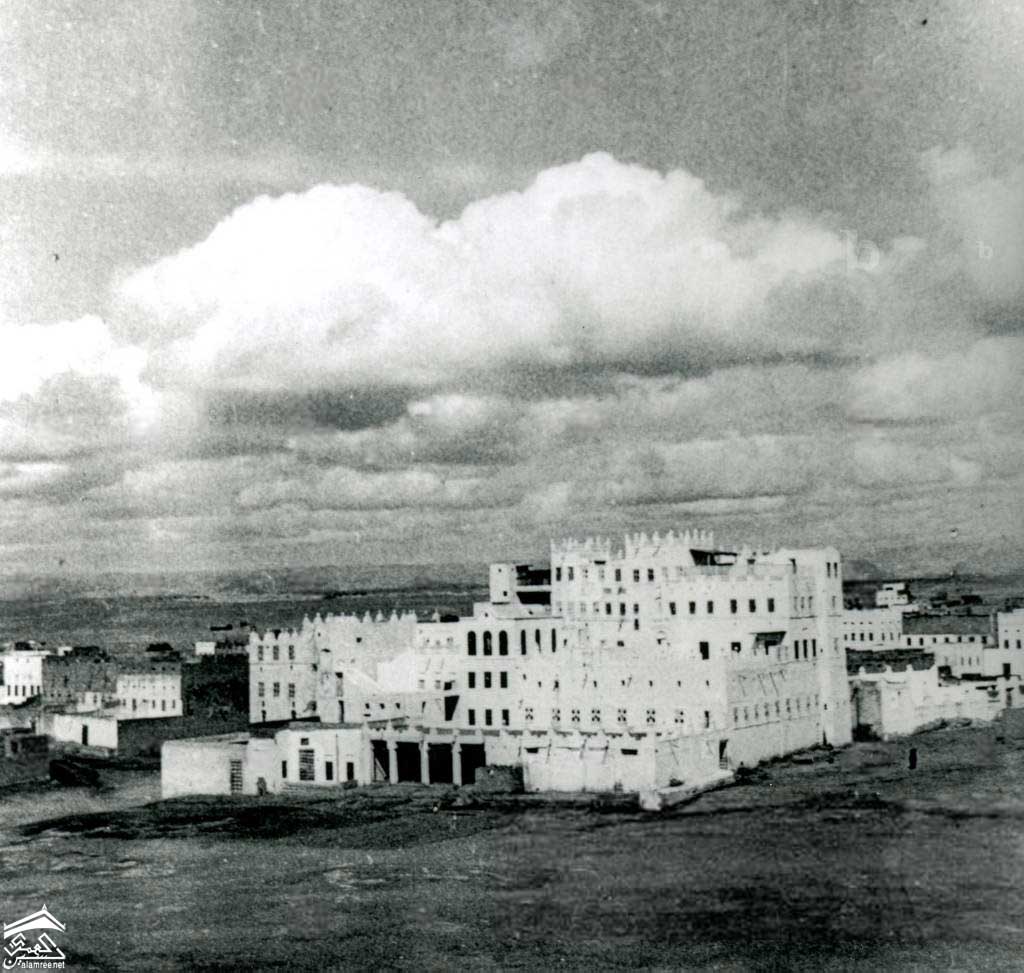 مقر الحكومه بشبام عام 1934م قصر متقن الصنع متعدد الطوابق من الطوب اللبن، ذو أشرطة أفقية متباينة، المنارة