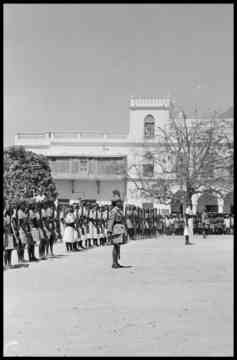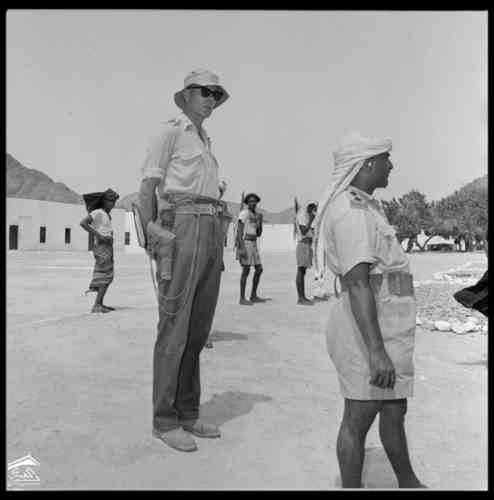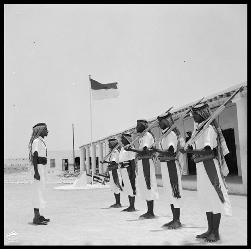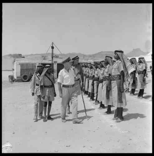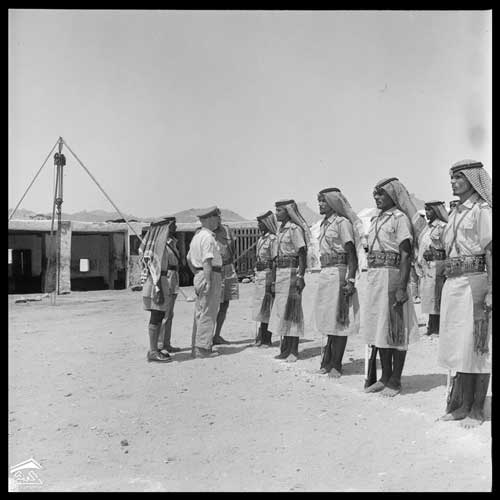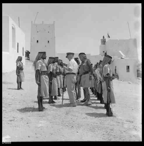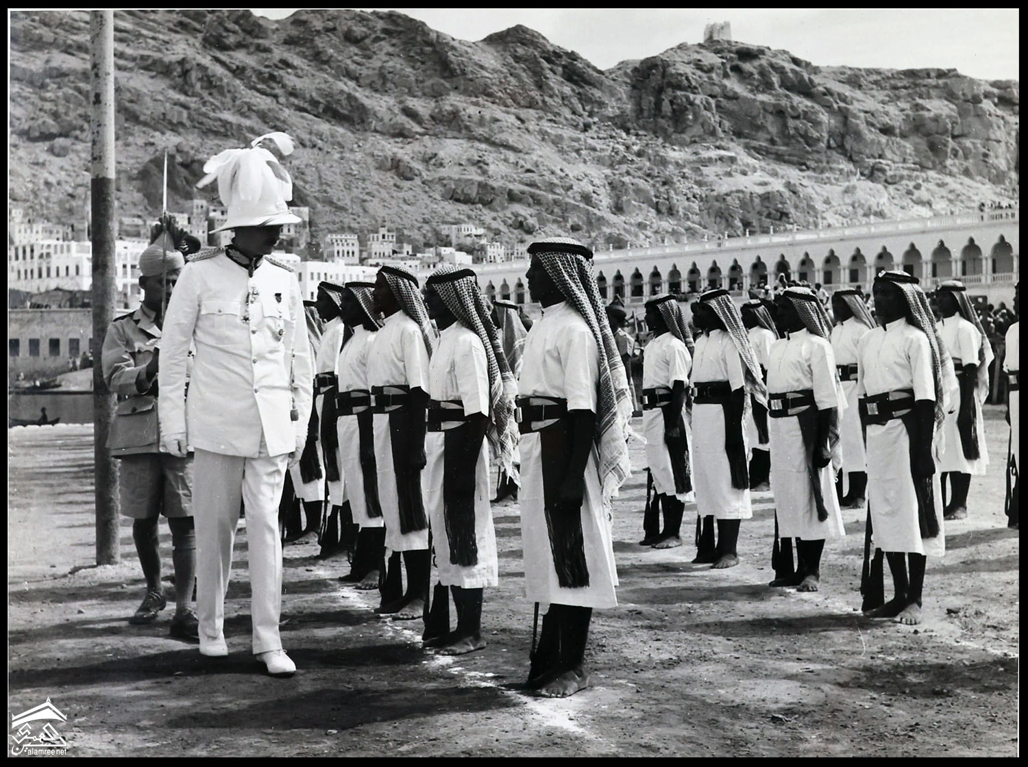 احد المسئولين الانجليز يتفقد احد فصائل جيش البادية الحضرمي