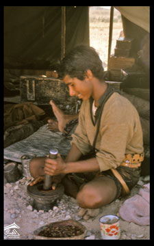مجموعة من جنود احد المراكز التابعة لجيش البادية الحضرمي اثناء تناول وجبة