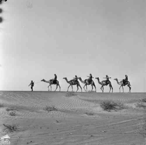 دورية للهجانة التابعة لجيش البادية الحضرمي وكانت البداية متواضعة اقتصرت على «50 رجلاً» يتبعهم «12 جملاً وسيارة حمولة وجهاز لاسلكي..