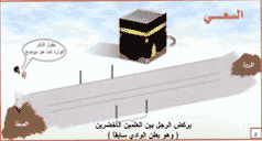 ثم ينــــزل من الـــــمروة إلى الصفـــــــــا ماشياً فيمشي في موضــــــع مشيه ويسعى في موضع سعيه .
