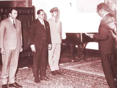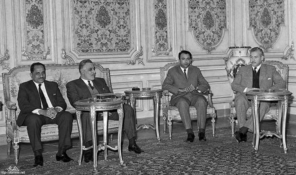 الرئيس قحطان محمد الشعبي والرئيس جمال عبدالناصر وسيف الضالعي في القاهره