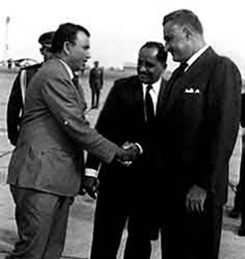 عبدالناصر وبينهما الرئيس قحطان الشعبي |