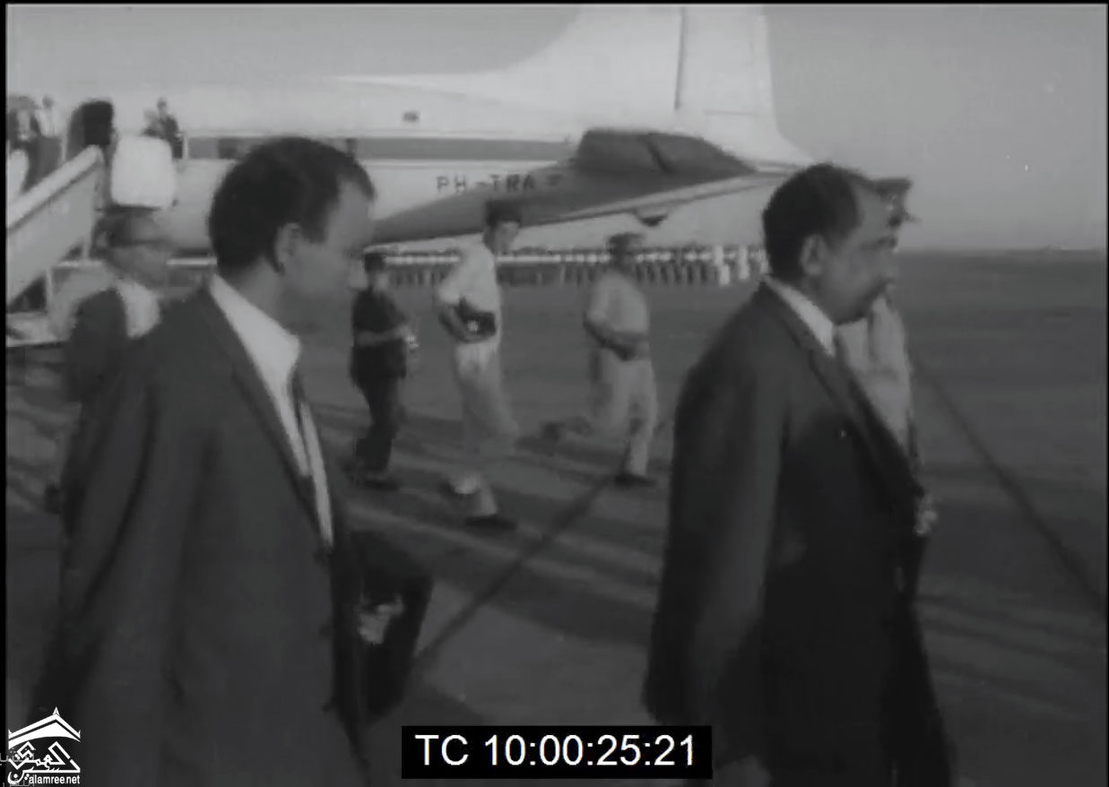 الشعبي وخلفه سيف احمد الضالعي بعد عودتهم من مفاوضات الاستقلال في جنيف |