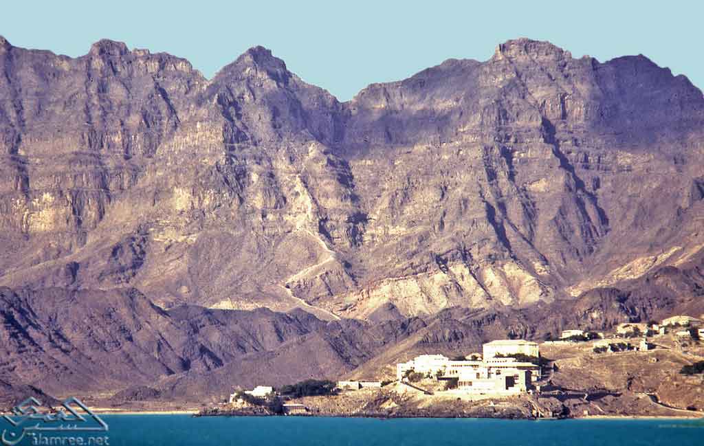 جولد مور من البحر وفي الخلفيه جبل شمسان
