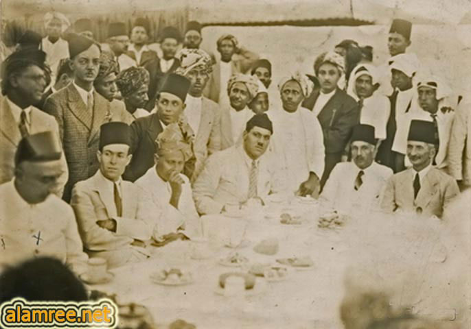 ثلاث من بين الزعماء الفلسطينيون . وقد أقيم حفل لتكريمهم خلال مرورهم بميناء عـدن وهم في طريق عودتهم إلى فلسطين بعد إطلاق سبيلهم عام ١٩٣٩