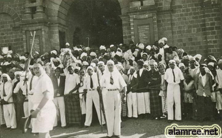 اهالي محلة الشيخ عثمان وعـدن يهرعون لتحية زعماء فلسطين الذين نفتهم بريطانيا إلى جزر سيشل بعد إطلاق سبيلهم عام ١٩٣٩