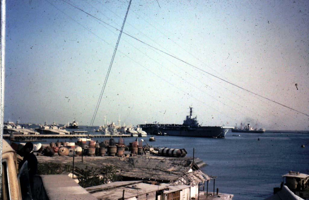 حاملة طائرات اميركيه في ميناء عدن بداية الستينات البوم صور عدن قديم