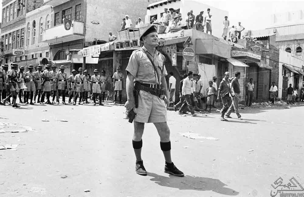 حندي بريطاني يراقب مجاميع المتظاهرين في الشيخ عثمان 4 اكتوبر65