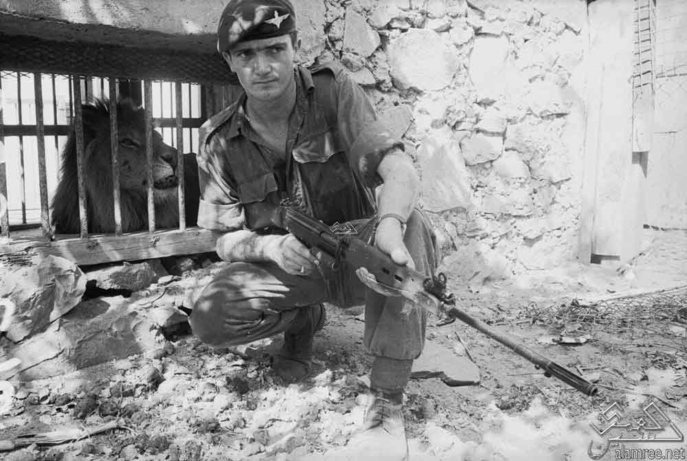 حديقه الحيوانات الشيخ عثمان صوره لجندي بريطاني بجانب اسد اسير