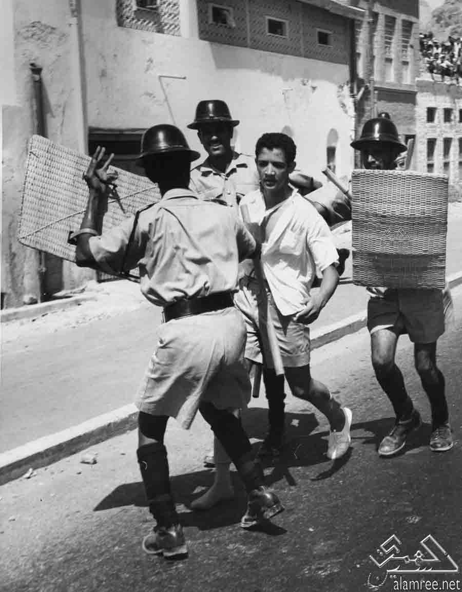 اعتقال احد ابناء عدن المتظاهرين احتجاجا على انضمام عدن لاتحاد الجنوب العربي في 26 سبتمبر 1962