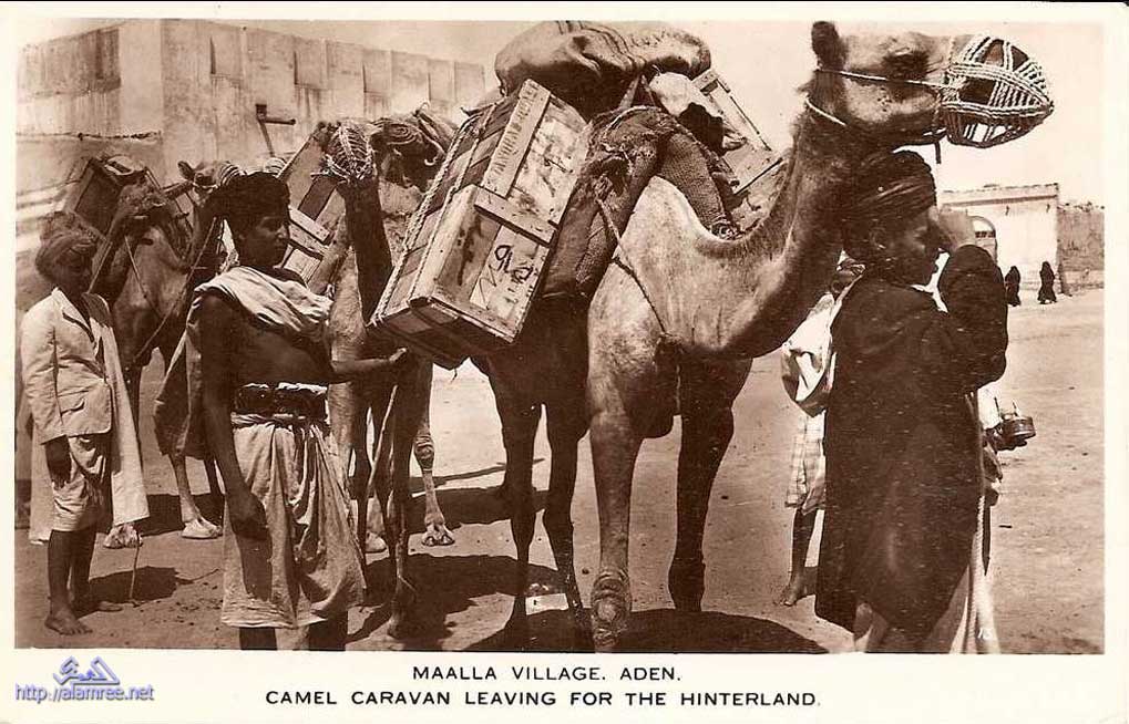 قافله خارجه من الدكه محمله ببضائع للمحميات في الاربعينيات البوم صور عدن قديم