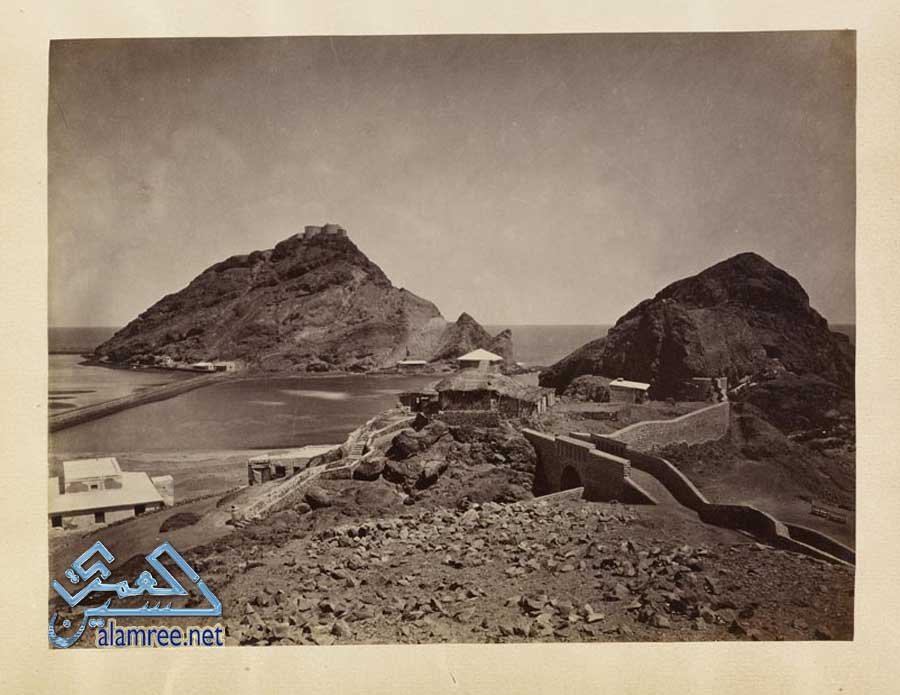 صورة نادره لجزء من سور واستحكامات عسكرية دفاعية عن كريتر وفي الخلفيه قلعة صيرة التاريخية البوم صور عدن قديم