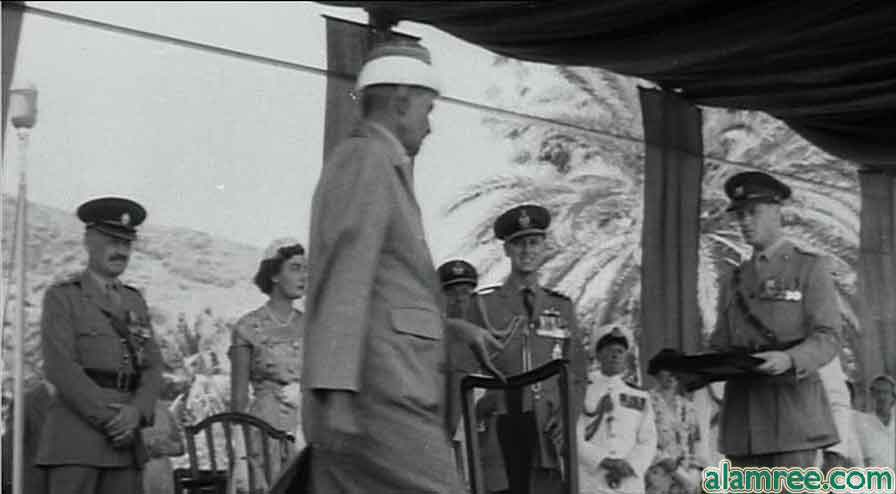 السيد أبو بكر بن شيخ الكاف اثناء صعوده المنصه لكي تقلده ملكة بريطانيا لقب فارس