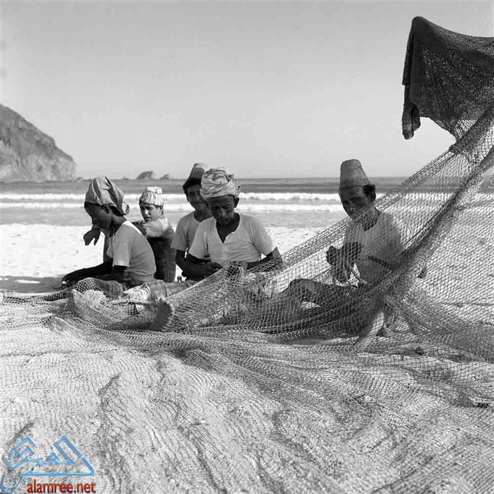 الغدير البريقه عام 1955مجموعة صيادين تجهز الشبكات للصيد القادم البوم صور عدن قديم