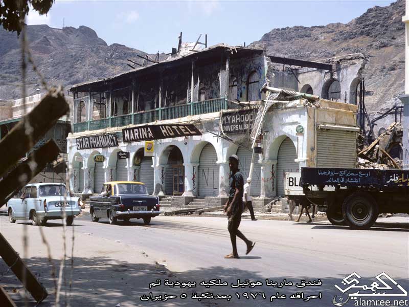 مارينا هوتيل واثار الصراع على اعمدته قبل احراقه