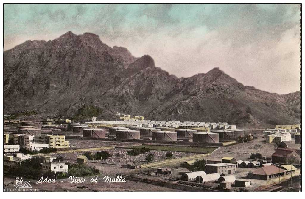 ميناء عدن في الستينات وفي الخلفيه عقبة عدن وبابها |