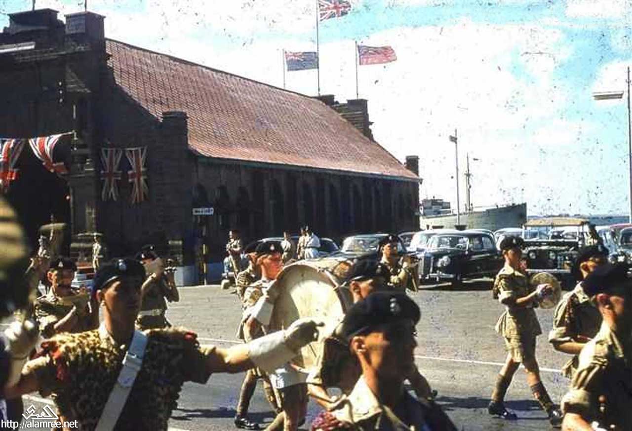 عرض للفرقه النحاسية التابعة للقوات البريطانية في عدن امام بوابة رصيف