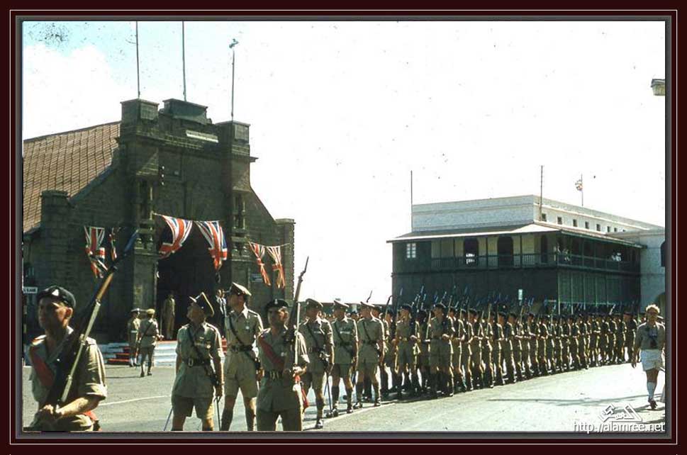 عرض عسكري لقوات الاحتلال البريطاني في الشارع المؤدي لمقر الحاكم