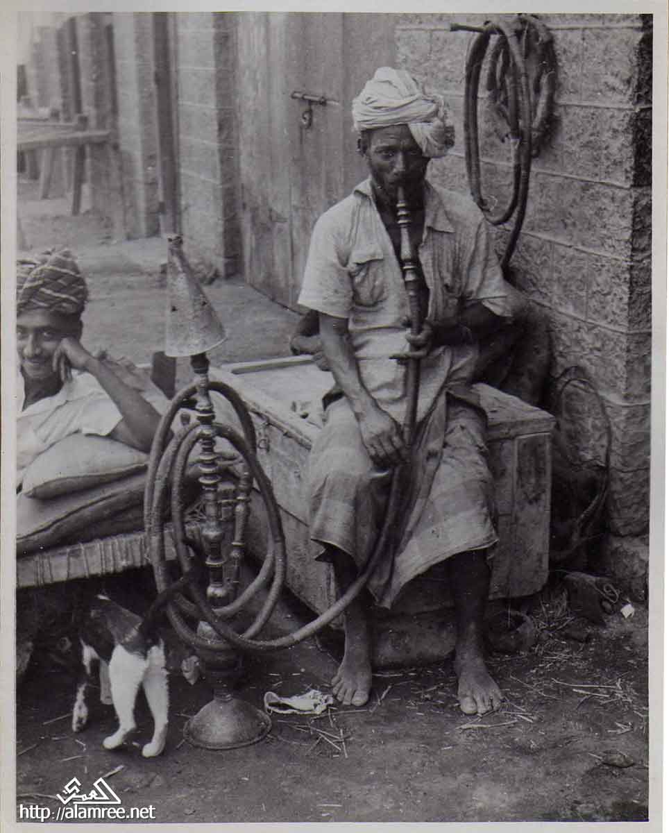 احد الشيوبه يدخل البايب التقليدي في احدى حدائق التواهي منتصف الاربعينيات