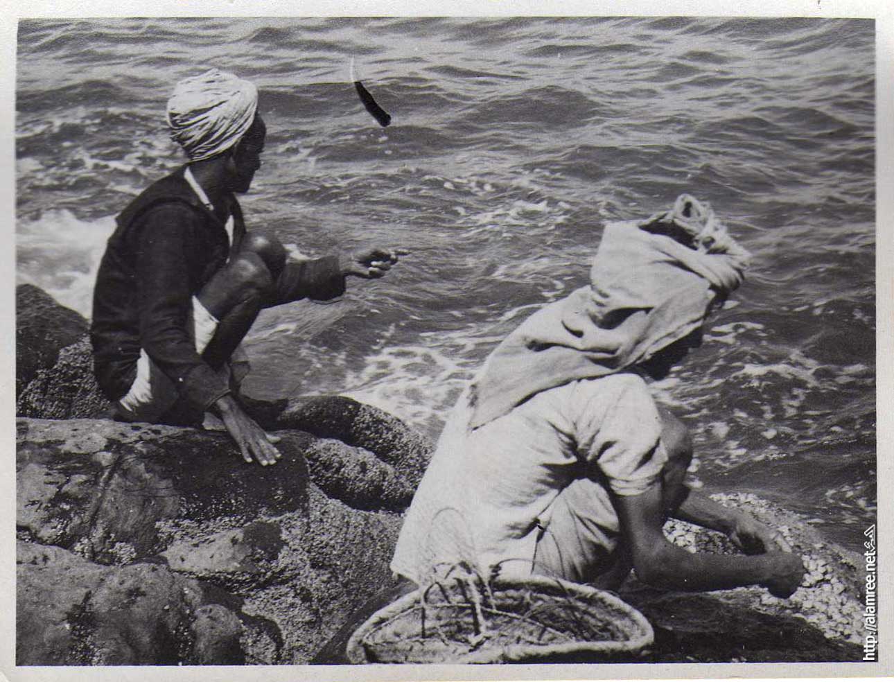 مجموعة صيادين هواه في بعض مناطق عدن المطله على البحر في الاربعينيات