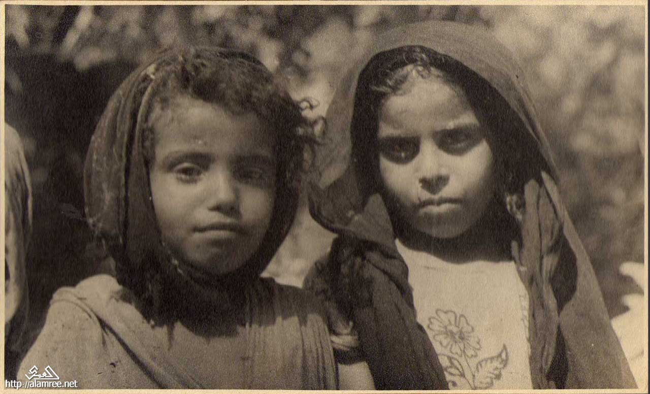 صوره لطفلتين في احدى الحدائق " التي كان يطلق عليها تسمية بجيشه " في اربعينيات القرن الماضي