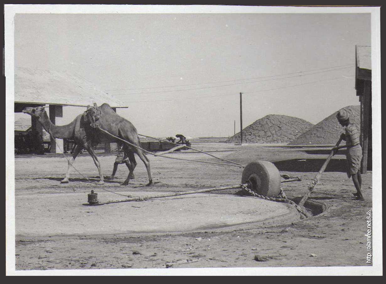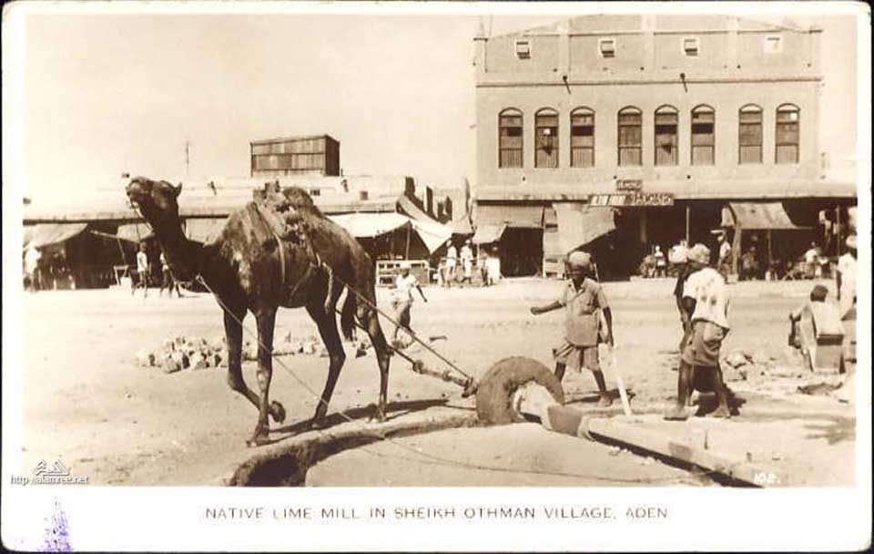 في الماضي كان امام كل بناء في عدن جمل ودائره وقناة حول الدائره توضع فيها مادة البوميس وهي شبيهه للاسمنت لتخلط وتطحن مع مواد اخرى تستخدم في البناء ، فيدور الجمل حول الدائره عكس عقارب الساعه جارا معه اثقال على شكل عجله من الحجر توضع في القناة ومربوطه الى عمود من الخشب او الحديد مثبت في منتصف الدائره ، فيجرها الجمل لتطحن بواسطتها مادة البوميس التي تستخرج من مناجم كهوف جبل البوميس لتستخدم كخلطه رابطه في عملية البناء قبل اكتشاف الاسمنت وبعده وقد استخدمت هذه الماده في تشييد صهاريج الطويله سابقا وكذا البناء العمراني من الحجر وخلطة البوميس