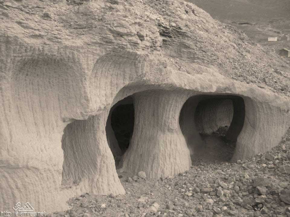 كهوف البوميس " أول مناجم عرفتها منطقتي شبه الجزيرة العربية والقرن الأفريقي في الألفية الأولى قبل الميلاد لاستخراج مادة شبيهة بالأسمنت تسمى "(البوميس)