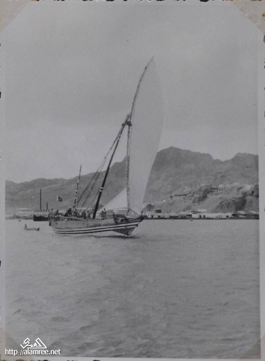 سفينة شراعيه داخله مينار عدن منتصف القرن  الماضي