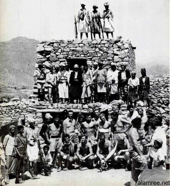 صوره للقوات البريطانيه في قبضة رجال القبائل في تعز عام 1963م وقد