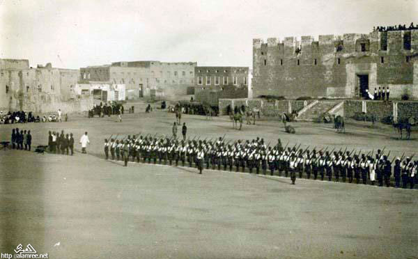 صوره نادره ولاول مره تعرض لاول كتيبة مشاه يمنيه عام 1921مصورة لحشد من الناس في البيضاء |