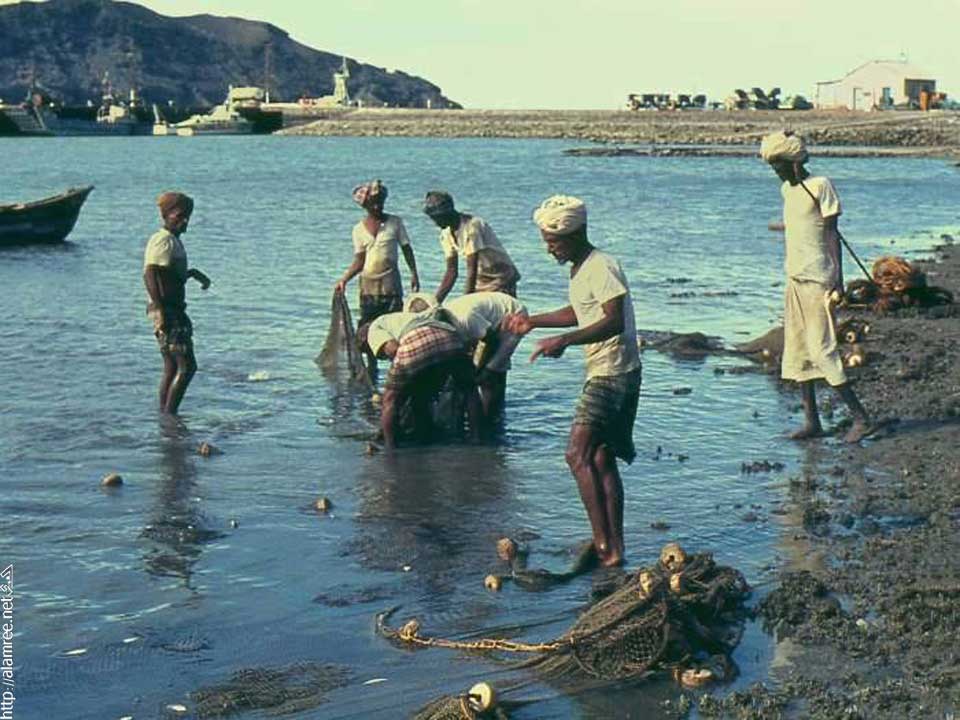 على الشاطئ يتم انزال الاسماك فيتم شراءها
