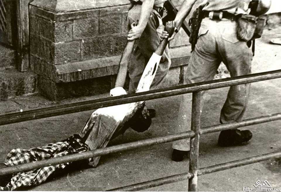 جنود بريطانيين يسحلون احد الثوار المضرج بدمه اثناء المواجهات بين الثوار