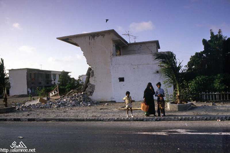 اثار المعارك على منازل حي الرشيد خورمكسر عدن في 13-1-1986م |