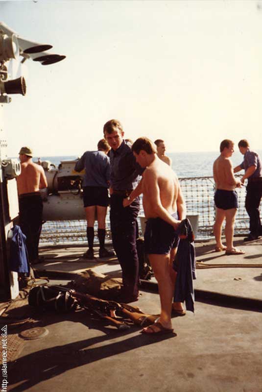 وعلى سطح السفينة الحربيه البريطانيه يتم