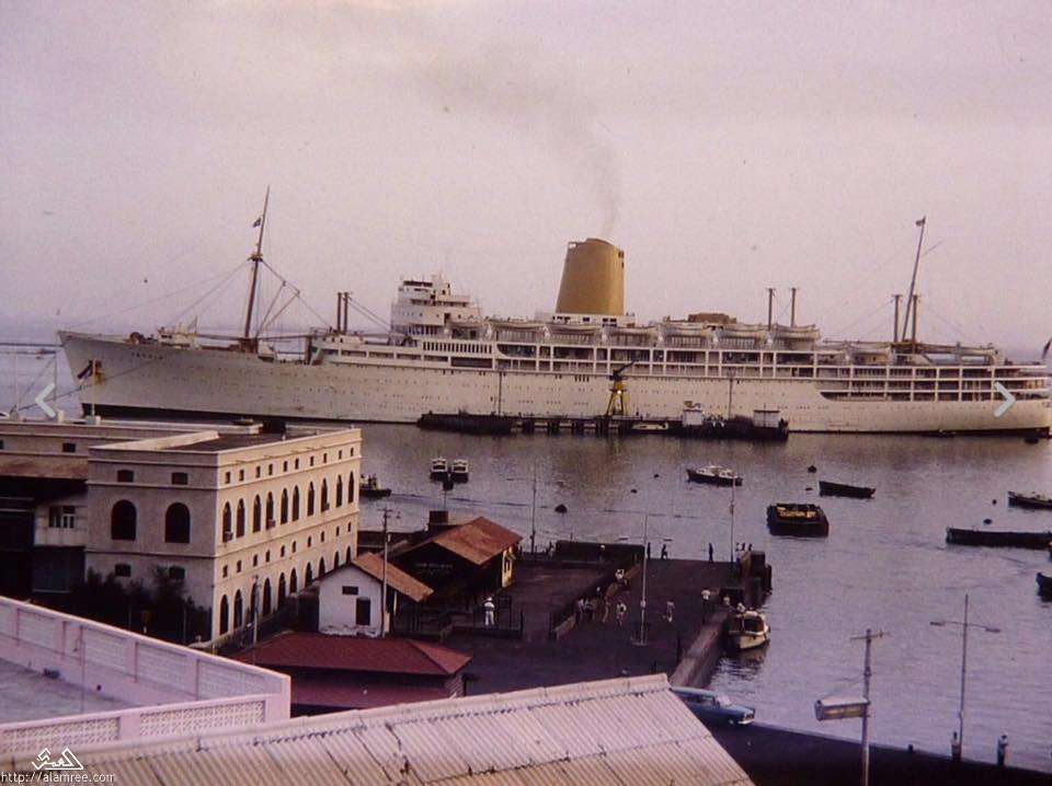 ميناء عدن ومبنى الجمارج في الستينيات |
