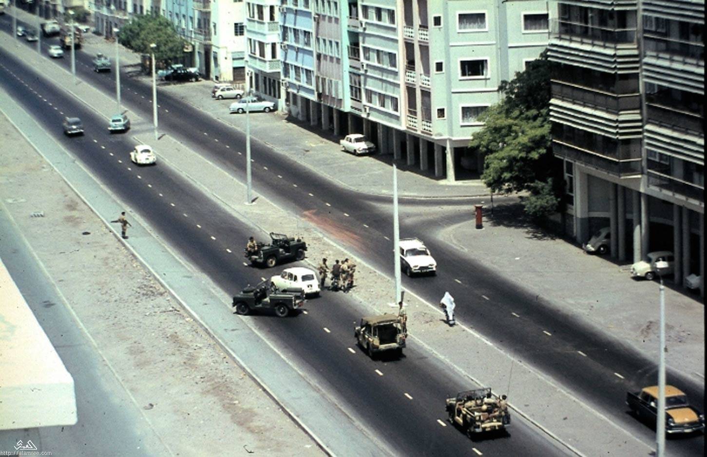 نقطه تفتيش للسيارات في الشارع الرئيسي المعلا في ستينيات القرن الماضي |