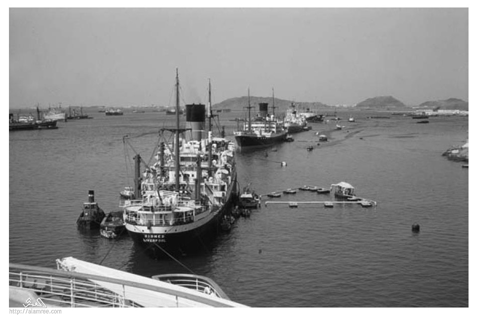 التواهي عدن وسفينة تجاريه استراليه في منتصف الخمسينيات |